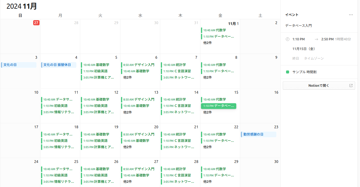 }Notion カレンダーで表示すると以下のようになります。