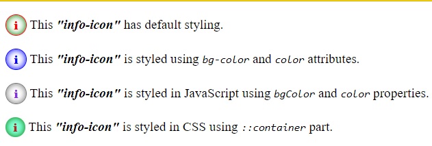 bg-colorandcolor:<p><info-icon color="blue" bg-color="blue"></info-icon> This "info-icon" is styled using bg-color and color attributes.</p>Or use the properties