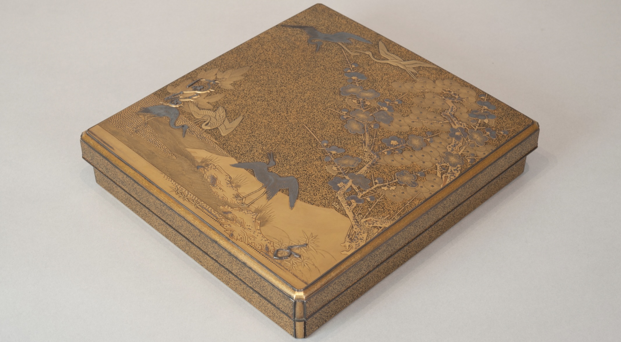 The social preview image is Writing Box with Cranes, Pines, Plum Blossoms, and Characters.