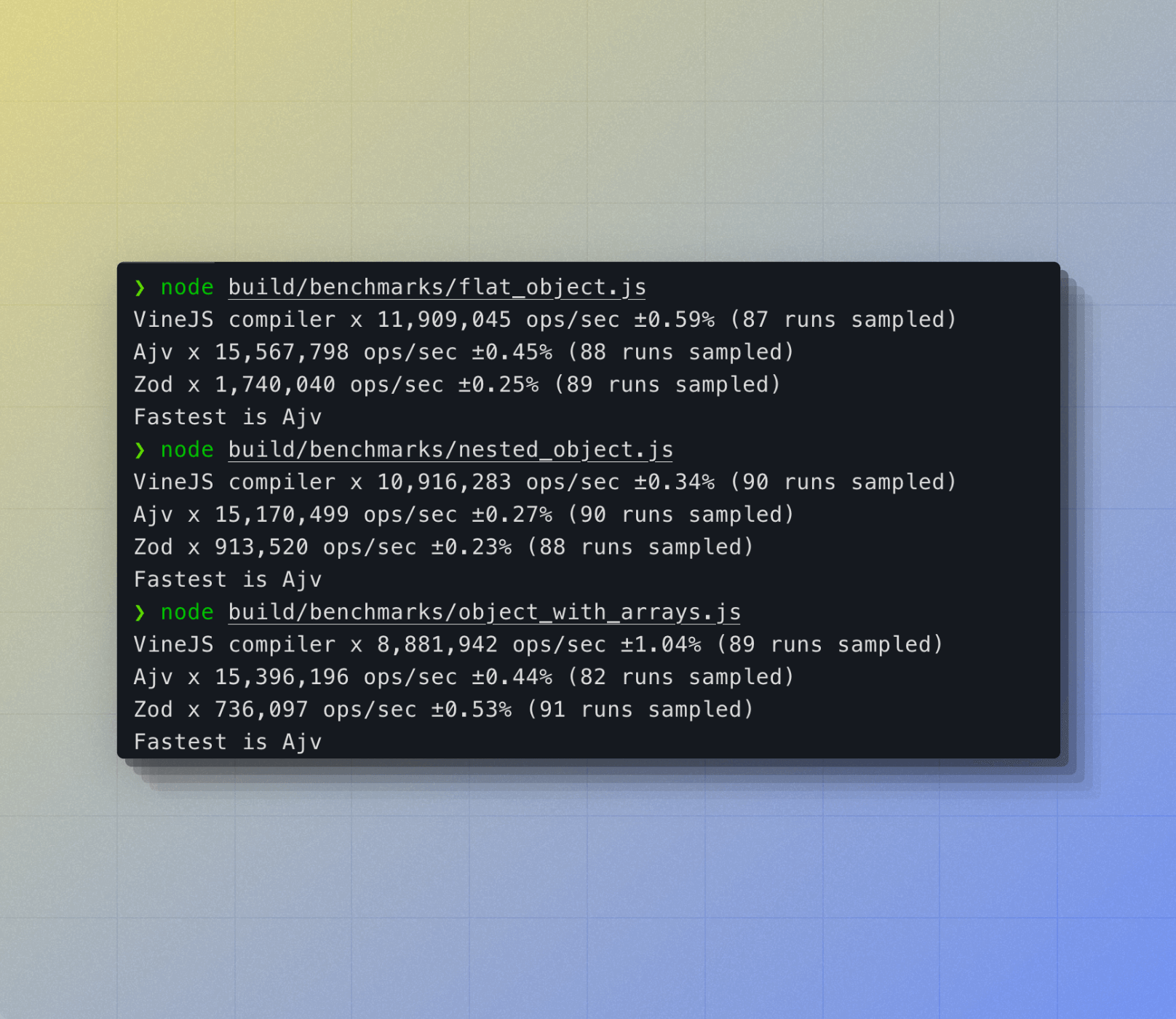 Ajv performs better in some instances because Ajv holds a reference to the input data object and does not create a new output object. Though Ajv behavior results in slightly better performance, it comes at the cost of sharing the same pointers between the input and output objects, and hence mutating one will mutate the other as well.