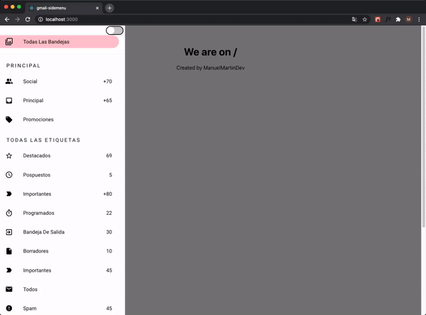 a react gmail-like sidemenu component ready to easily set up for your SPA