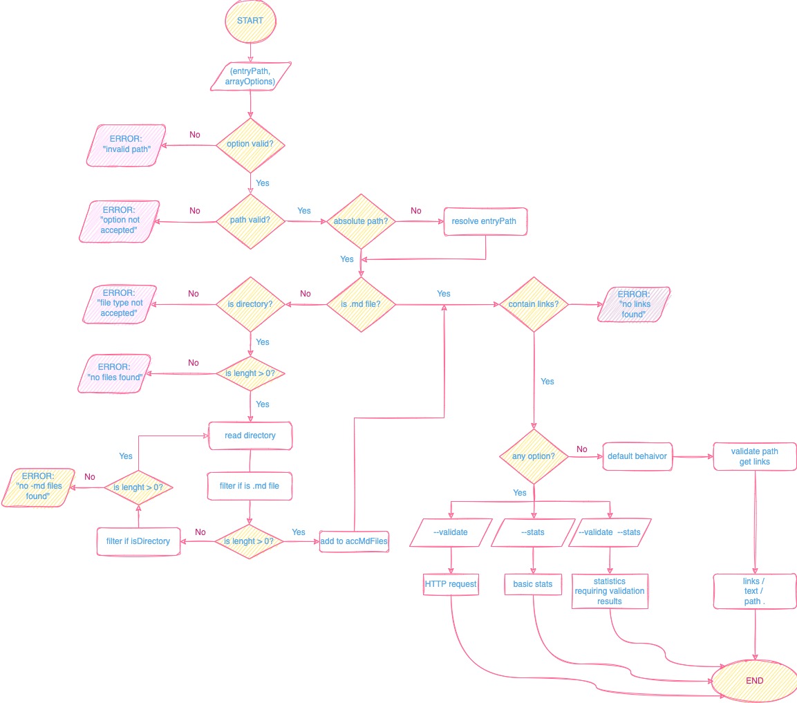 Esta librería lee y analiza archivos en formato Markdown, para verificar el estado de los links que contengan y reportar algunas estadísticas. Se desarrolló usando Node.js.