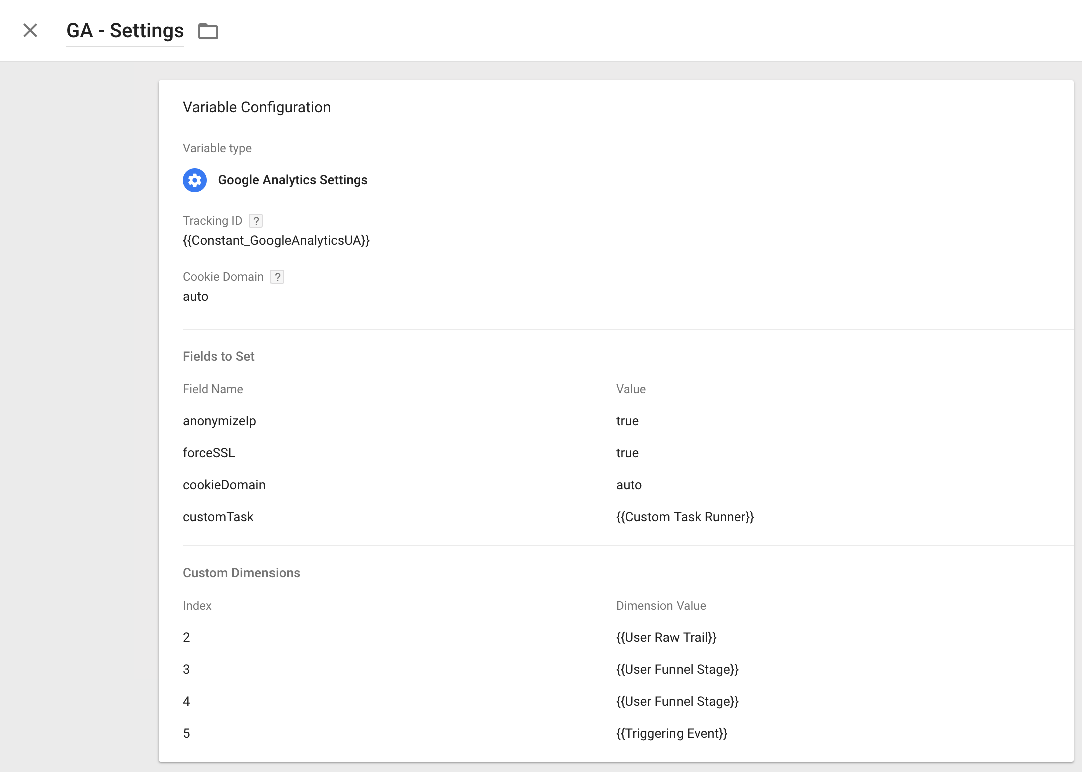 User Funnel Stage - Name : User Funnel Stage - Variable Type : Data Layer Variable - Data Layer Variable Name : funnelStage - Data Layer Version : Version 2