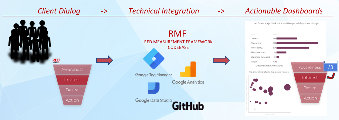 The RED Measurement Framework (RMF) is a collection of javascript code that is to be implemented in a browser based measurement system for tracking of events on websites in the aim of segmenting users based on their behavior.