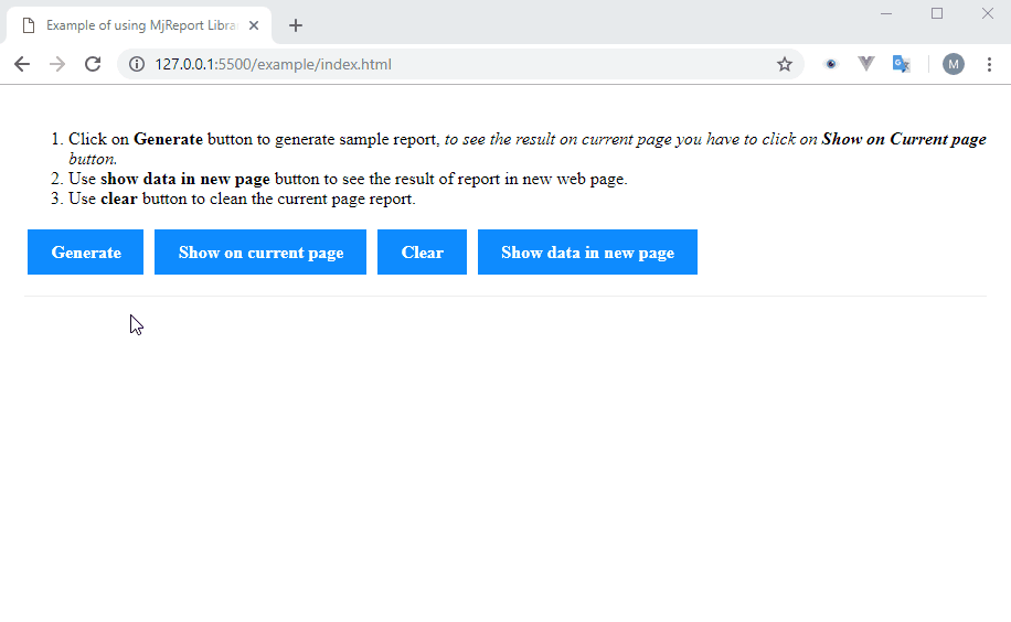 - After describe your report you can generate report data and pass it to client html page or electron renderer process.