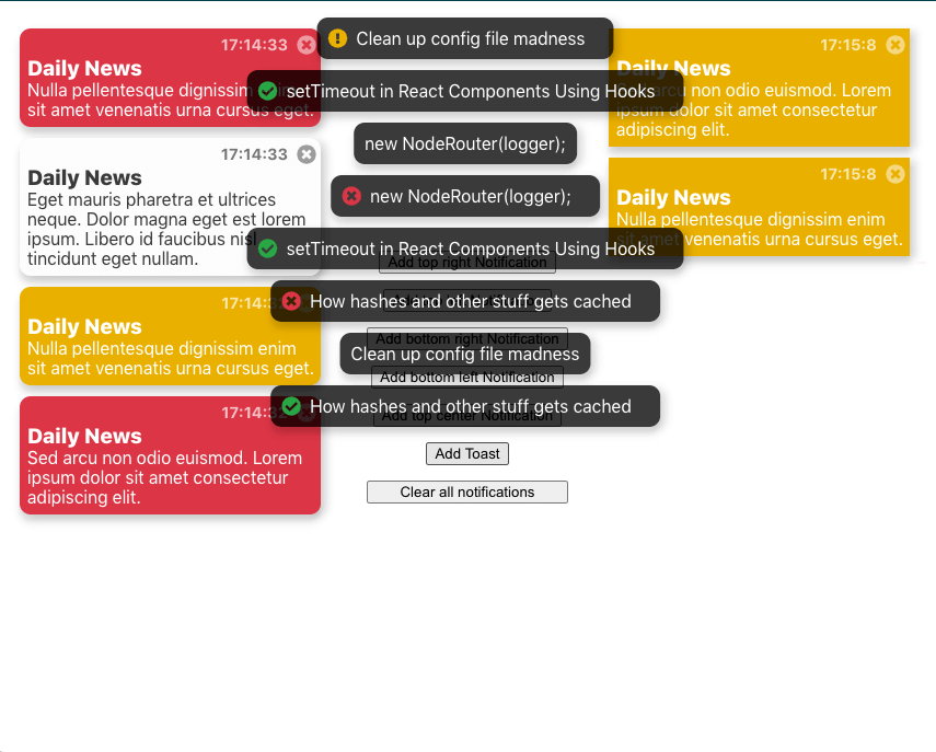 A lite weight notification and toast component library build with react hook.