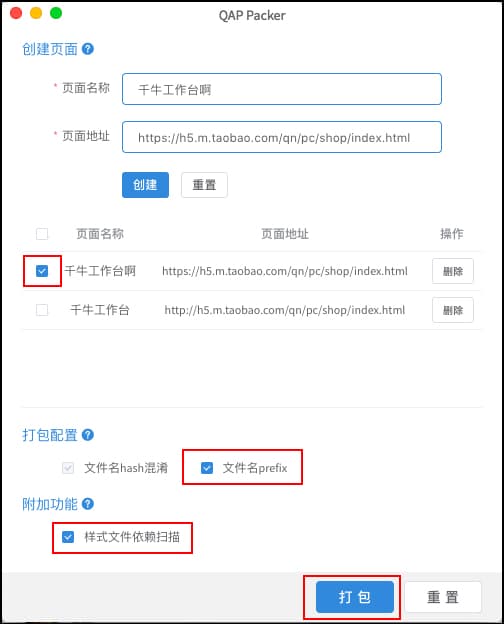 - 页面名称 支持中英文2~6字符(中文可转拼音、自动增加打包前缀)