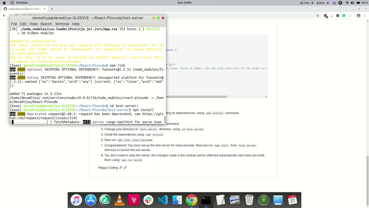 npm link react-pincode - Congratulations! You have set-up the test server for react-pincode.