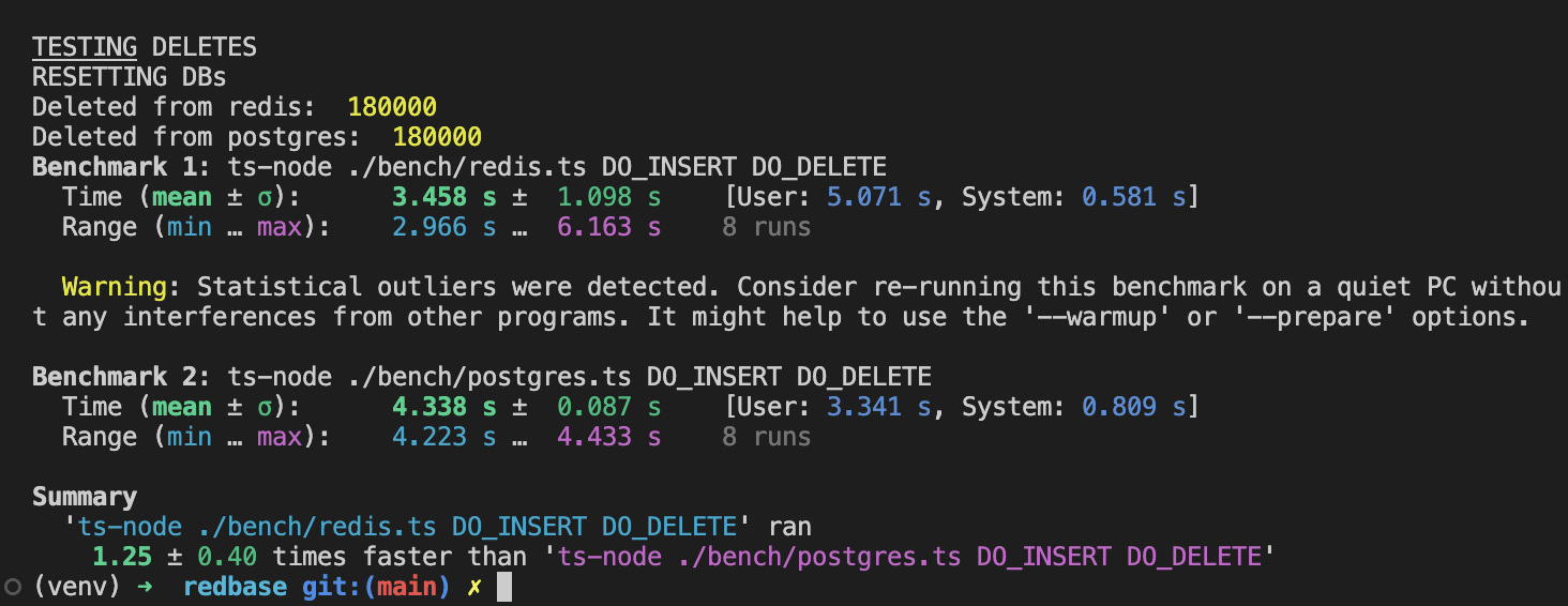- Inserting and deleting data: Redis is ~25% faster