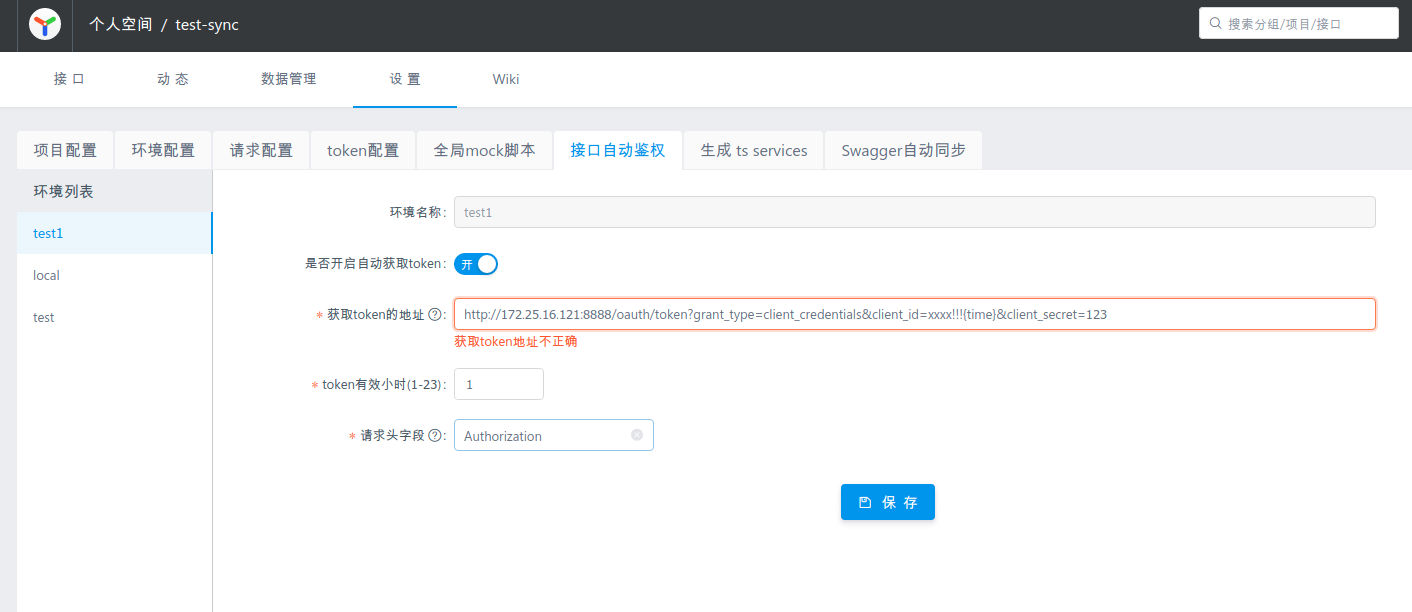进入项目设置页面,可以看到接口自动鉴权的Tab页