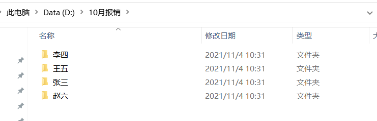 4.在报销的文件目录,例子为【10月报销】中打开命令窗口,运行指令